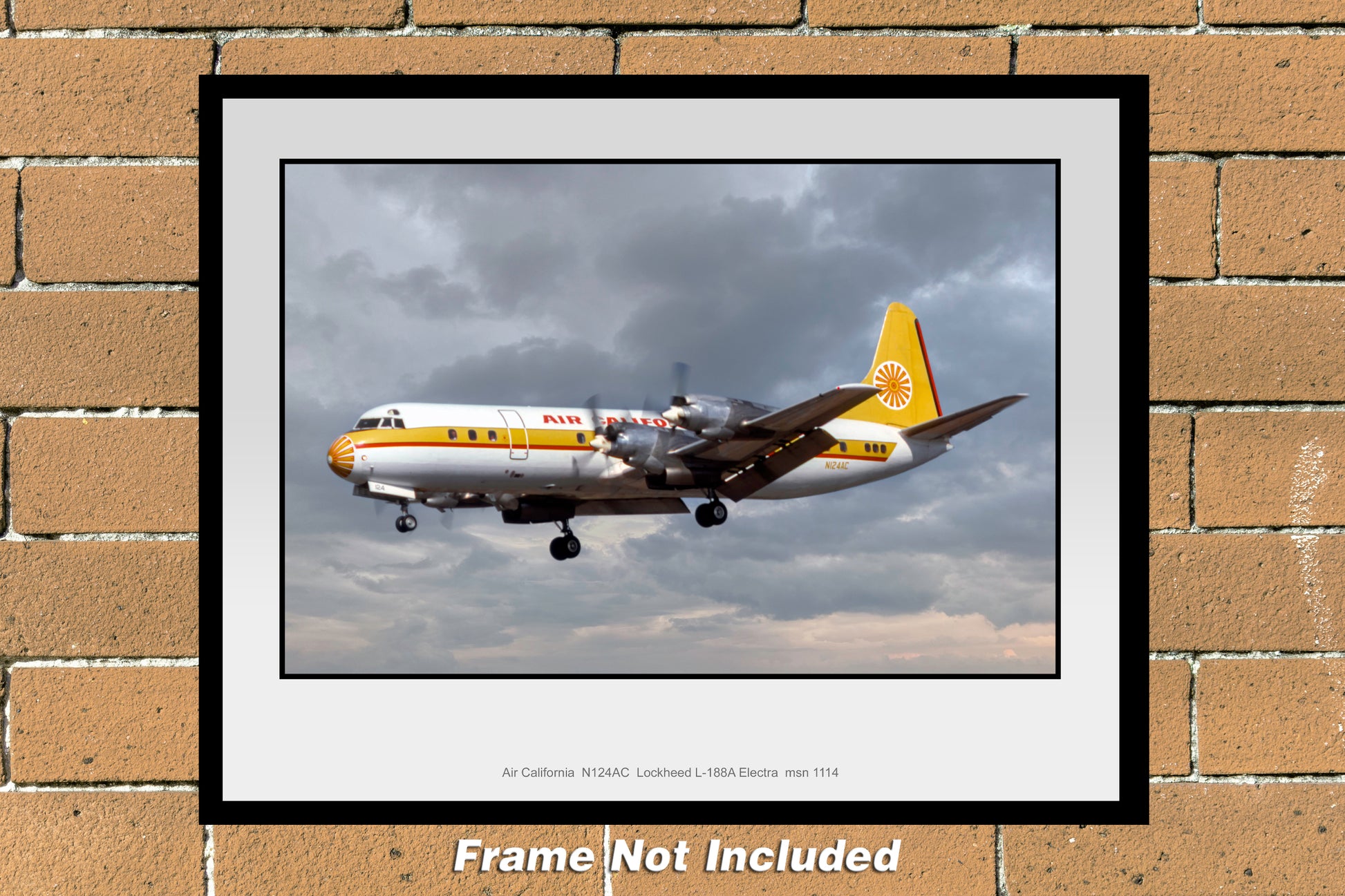Capture the essence of aviation history with this stunning 11" x 14" color photograph of an Air California Lockheed L-188A Electra. This unique piece is perfect for collectors and aviation enthusiasts alike. The photograph showcases the iconic American airline and its contribution to the world of transportation. Made in the United States, this photograph is a rare find for any collector. It is a high-quality item that has not been modified in any way. The photograph is perfect for display and is sure to be a conversation starter for years to come.
