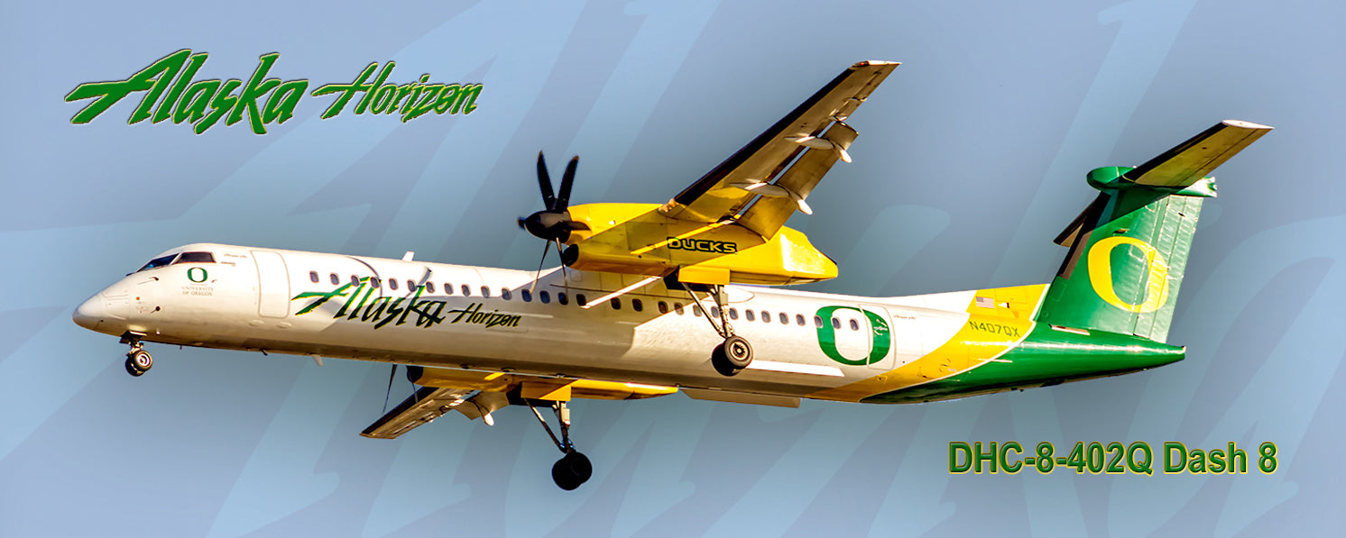 Alaska Horizon, Oregon Ducks Colors, DHC-8-402Q Dash 8, Handmade 2" x 5" Fridge Magnet (PMT1604)