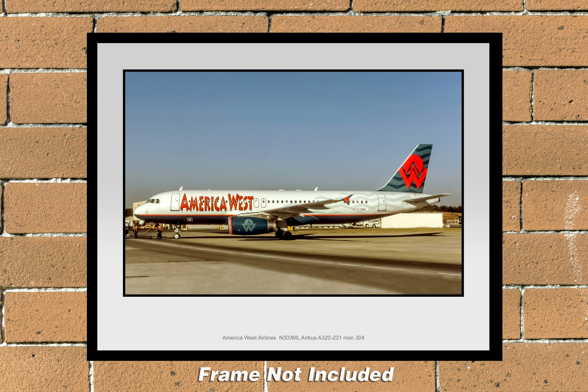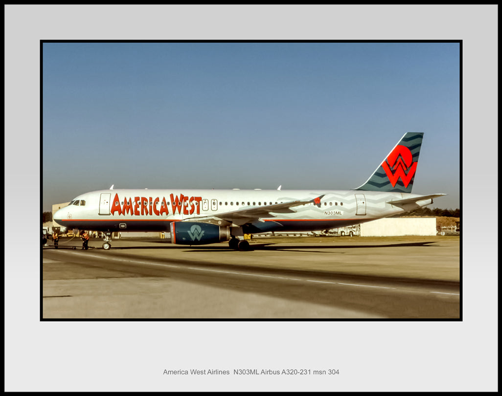 America West Airlines, N303ML, Airbus A320-231, 11" x 14" Color Photograph (T160LGEG11X14)