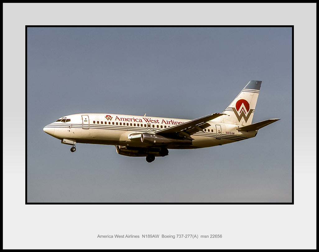 America West Airlines, N189AW, Boeing 737- 277(A), 11" x 14" Color Photograph (J013LAWW11X14)