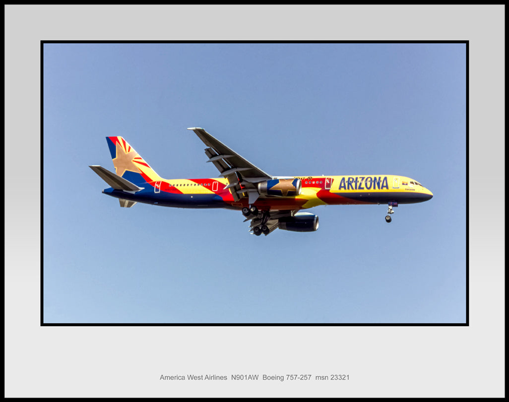 America West Airlines, Arizona Flag Colors, Boeing 757-257, 11" x 14" Color Photograph (N142RAJC11X14)