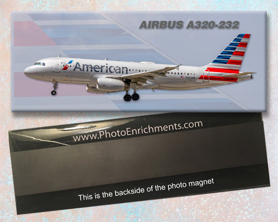 American Airlines, Airbus A320-232, Handmade 2" x 5" Photo Fridge Magnet (PMT1802)