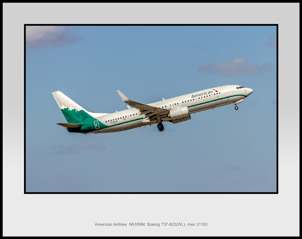 American Airlines, Reno Air Heritage Colors, N916NN, Boeing 737-823(WL), 11" x 14" Color Photograph (UU124RAJM11X14)
