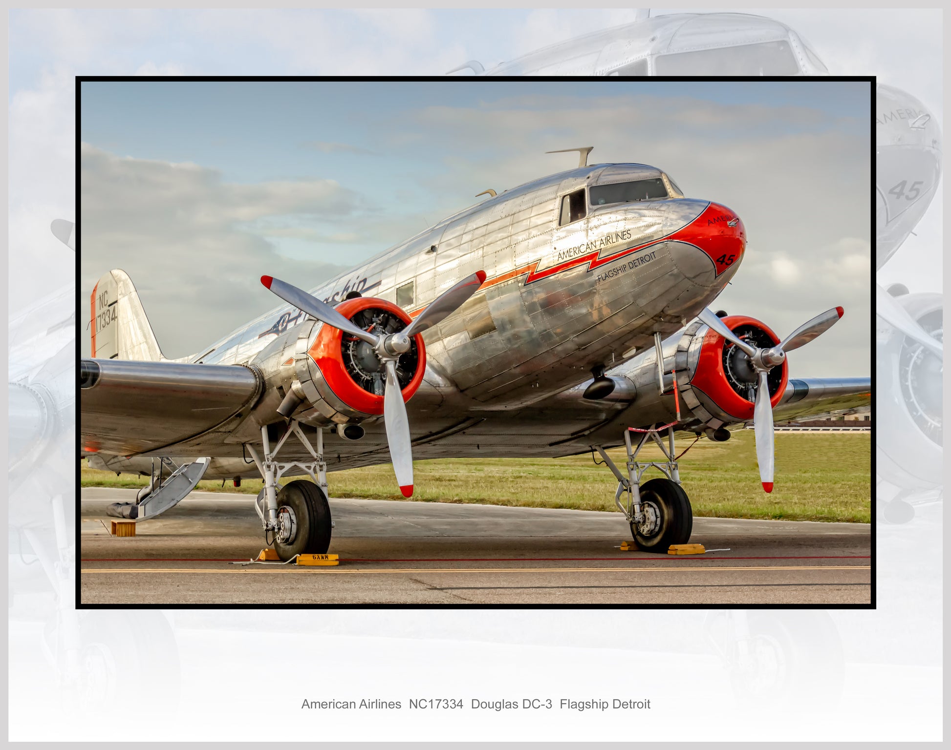 American Airlines, DC-3, Flagship Detroit, 11" x 14" Color Photograph (A035RGJM11X14)
