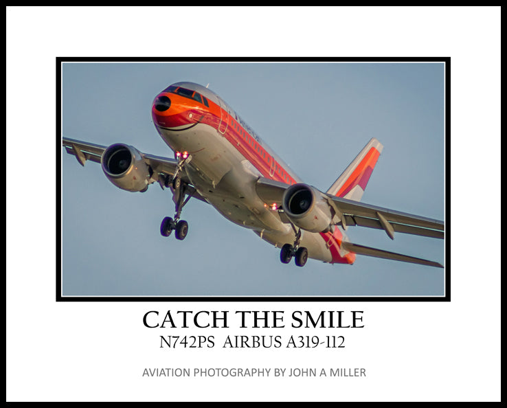 American Airlines, Airbus A319, PSA Colors, Catch the Smile 16" x 20" Color Photograph (APPL10003)