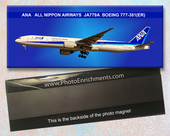 ANA All Nippon Airways, Boeing 777-381(ER), Handmade 2" x 5" Fridge Magnet (PMT1750)
