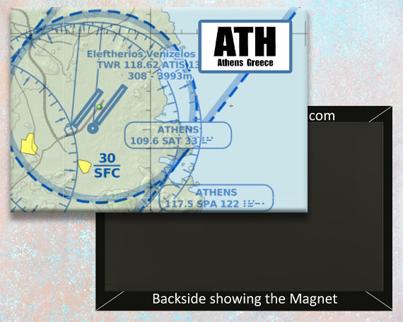 ATH - Athens Greece International Sectional Map, Handmade 3.25" x 2.25" Fridge Magnet (MM10513)