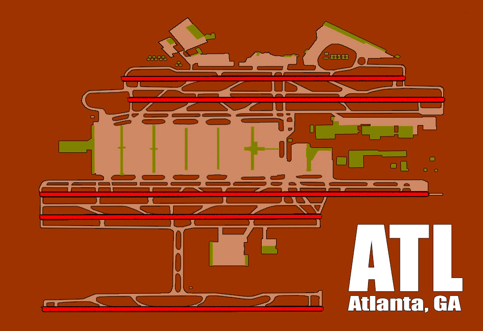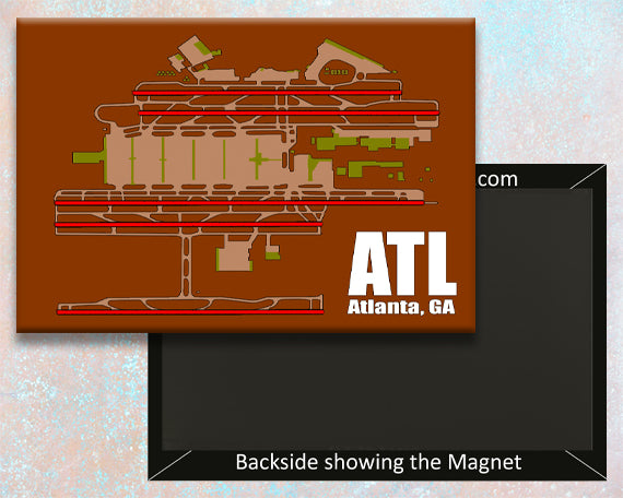 ATL Atlanta, GA Hartfield-Jackson International Airport Diagram Map, Handmade 3.25" x 2.25" Fridge Magnet (MM10005)