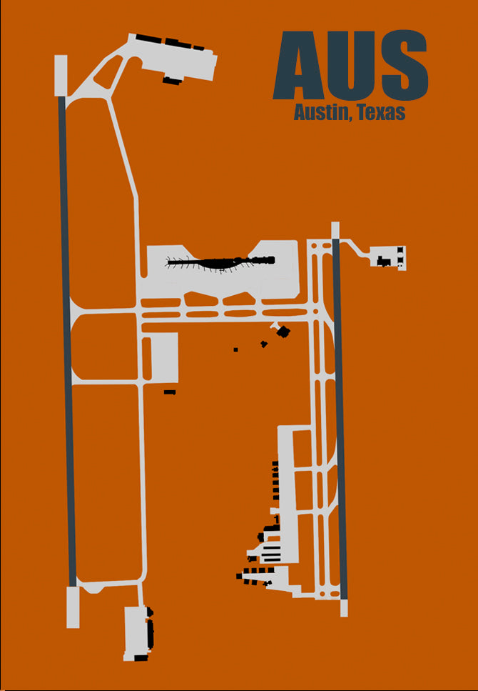 AUS - Austin Texas International Airport Diagram Map, Handmade 3.25" x 2.25" Fridge Magnet (MM10034)