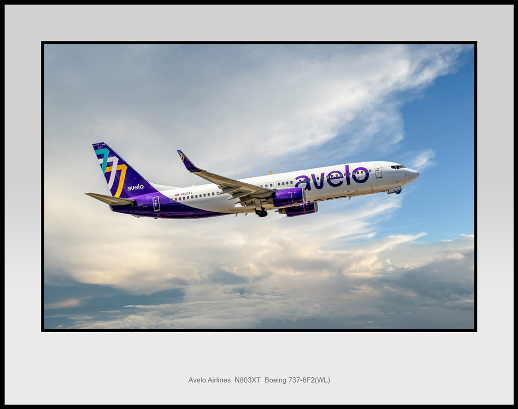 Avelo Airlines, Boeing 737-8F2(WL), 11" x 14" Photograph (UU145RAJM11X14)