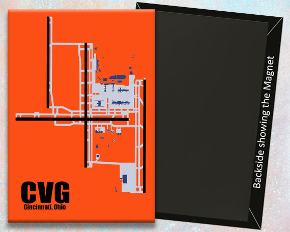 CVG - Cincinnati International Airport Diagram Map, Handmade 3.25" x 2.25" Fridge Magnet (MM10040)