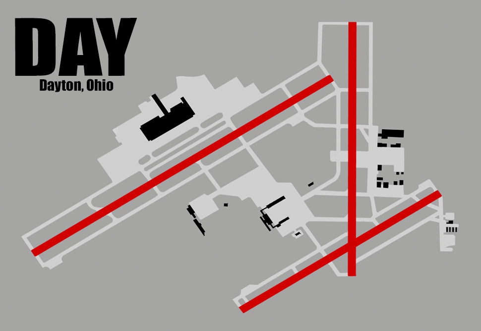 DAY - Dayton International Airport Diagram Map, Handmade 3.25" x 2.25" Fridge Magnet (MM10023)