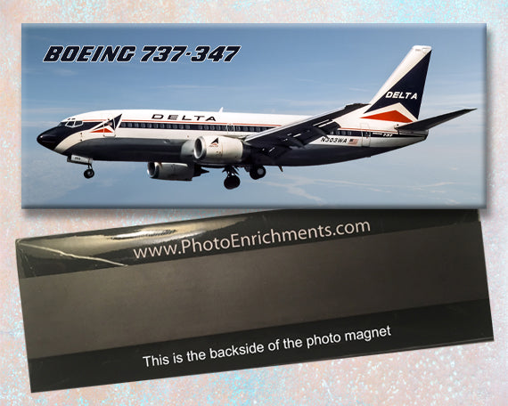 Delta Air Lines, Boeing 737- 347, Handmade 2" x 5" Fridge Magnet (PMT1519)
