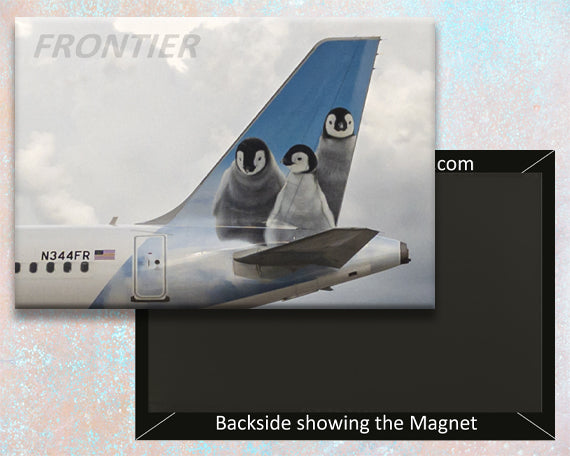 Frontier Airlines "The Penguins" Tail, Handmade 3.25" x 2.25" Fridge Magnet (PMCT4048)