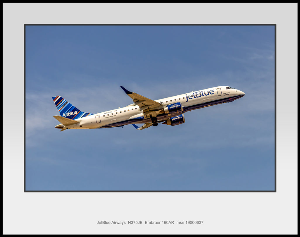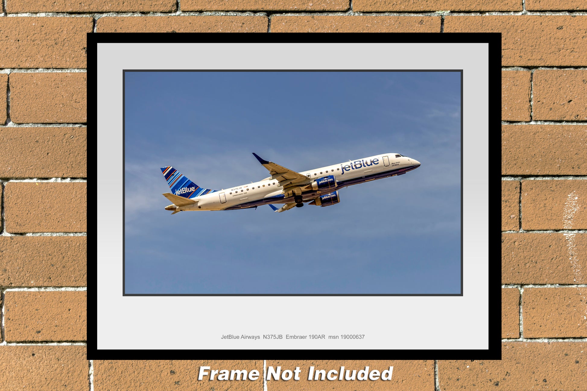 JetBlue Airways, N375JB, Embraer 190AR, 11" X 14" Color Photograph (YB011RAJM11X14)