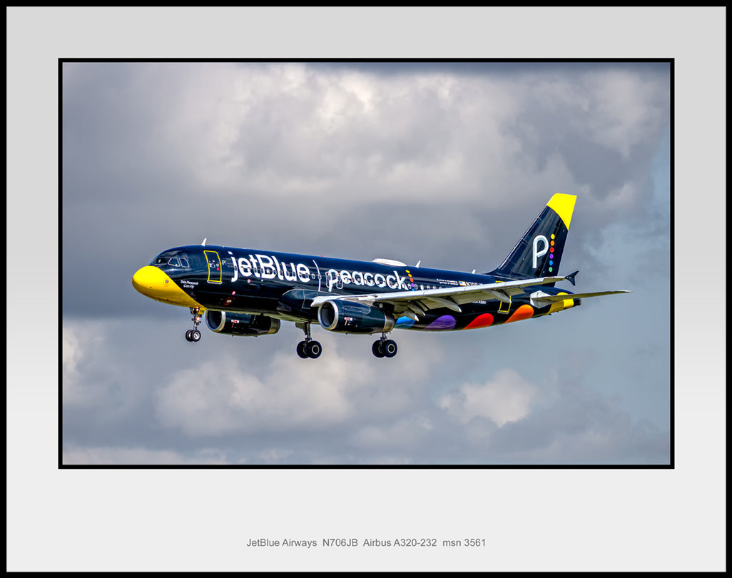 JetBlue Airways, Peacock Colors, N506JB, Airbus A320-232, 11" X 14" Color Photograph (T250LAJM11X14)