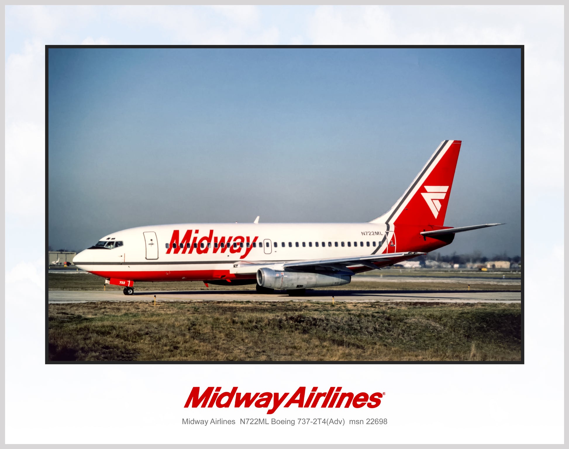 Midway Airlines, Boeing 737-2T4, 11" x 14" Color Photograph (J010LGJC11X14)