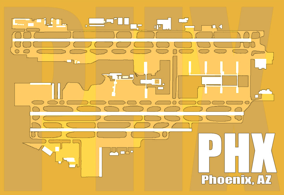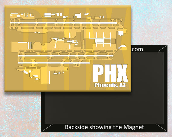 PHX, Phoenix International Airport Diagram, Handmade 3.25" x 2.25" Fridge Magnet (MM10014)