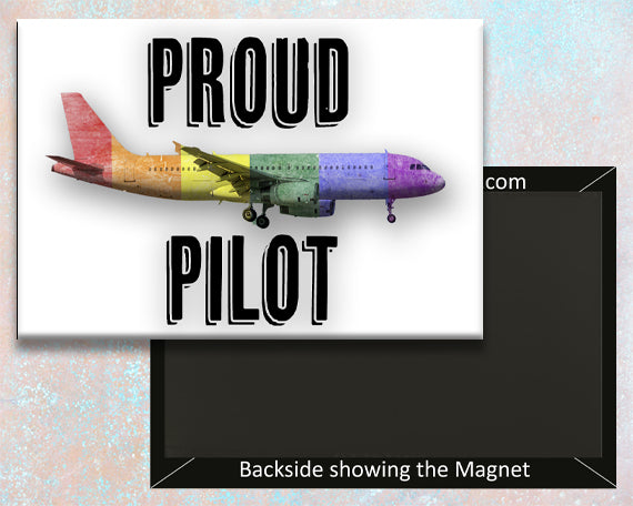 Proud Pilot, Rainbow Airplane, Handmade 3.25" x 2.25" Fridge Magnet (LM14407)