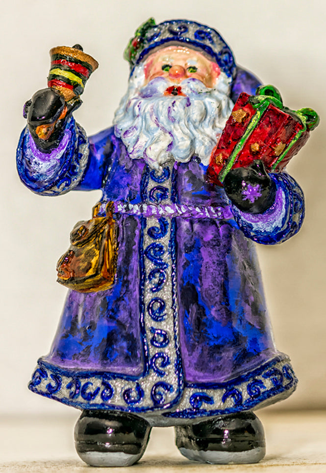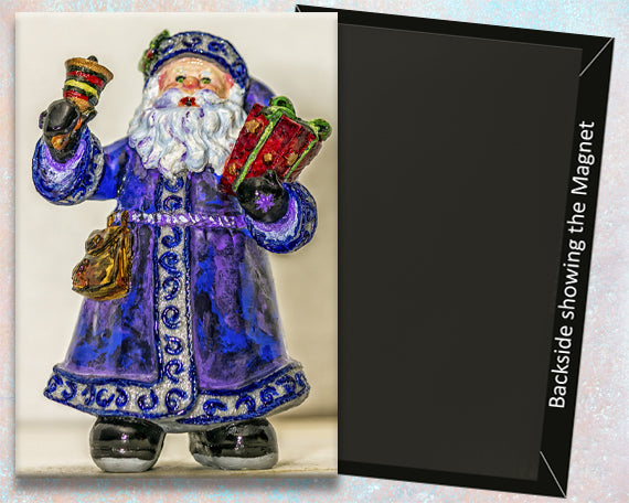 Santa Claus Bell Ringer with Gift, Handmade 3.25" x 2.25" Fridge Magnet (PMH11022)