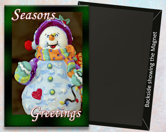Snowman, Seasons Greetings, Handmade 3.25" x 2.25" Fridge Magnet (PMH11006)
