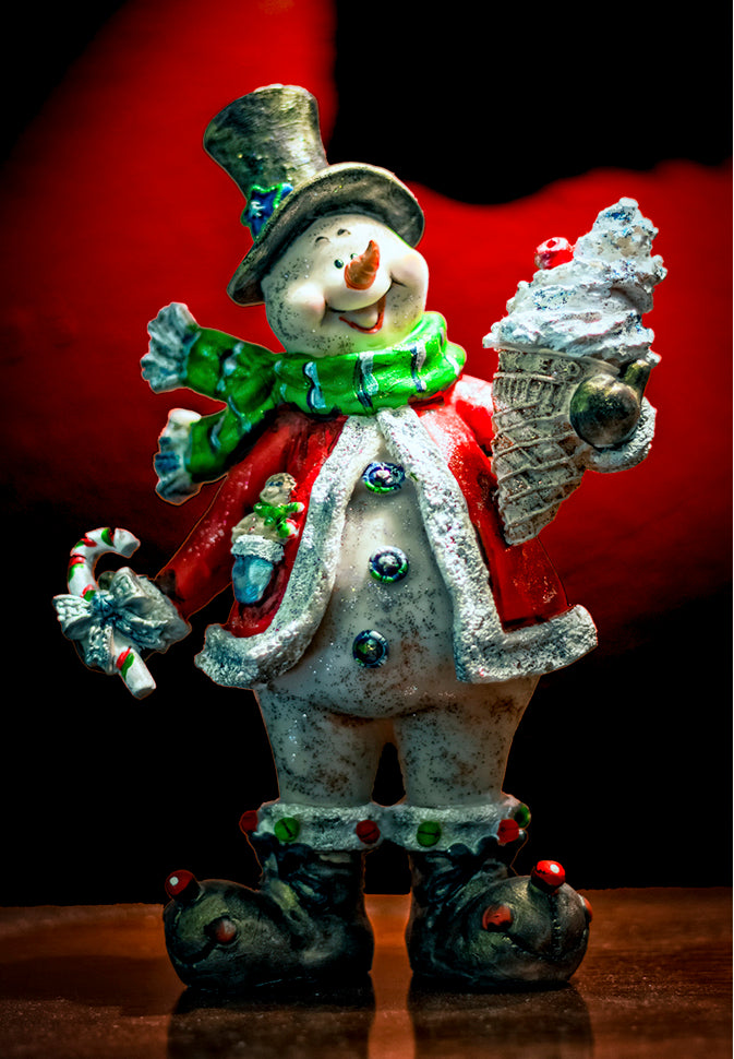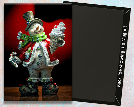 Holiday Snowman with Ice Cream Cone, Handmade 3.25" x 2.25" Fridge Magnet (PMH11026)