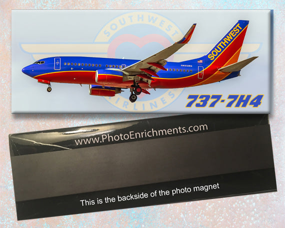 Southwest Airlines, 2001 Colors, Boeing 737-7H4(WL), Handmade 2" x 5" Fridge Magnet (PMT1542)