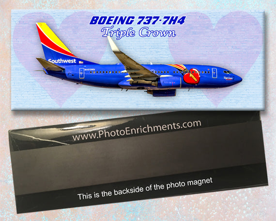 Southwest Airlines, Triple Crown Colors, Boeing 737-7H4, Handmade 2" x 5" Fridge Magnet (PMT1629)