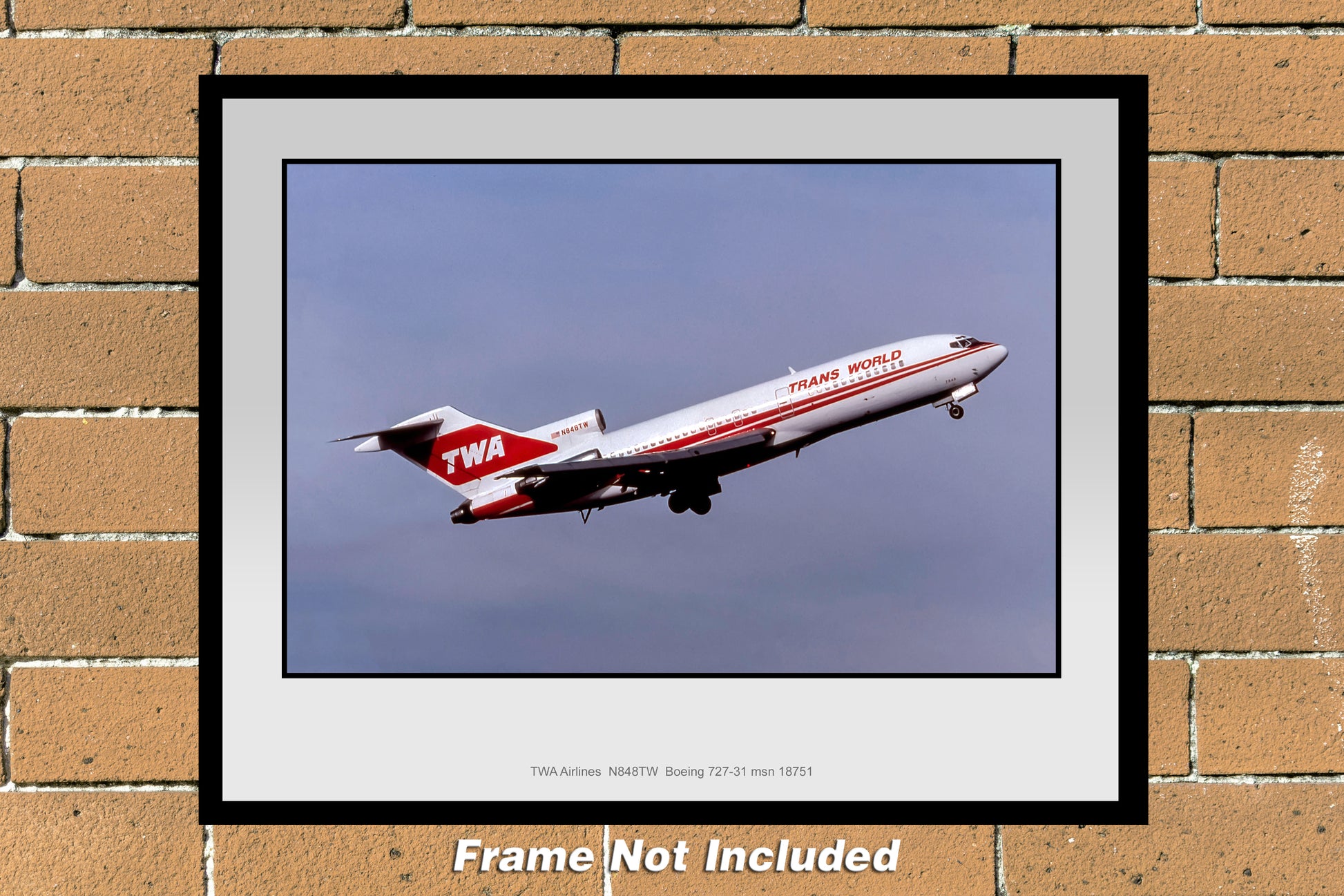 This beautifully captured 11" x 14" color photograph features a TWA Airlines Boeing 727-31. The photograph showcases the classic design of the aircraft and is perfect for any aviation enthusiast or collector. The photograph is in great shape and has not been modified in any way. The country of origin of the photograph is the United States and it is an excellent addition to any TWA, airline, aviation, transportation, or collectible collection.