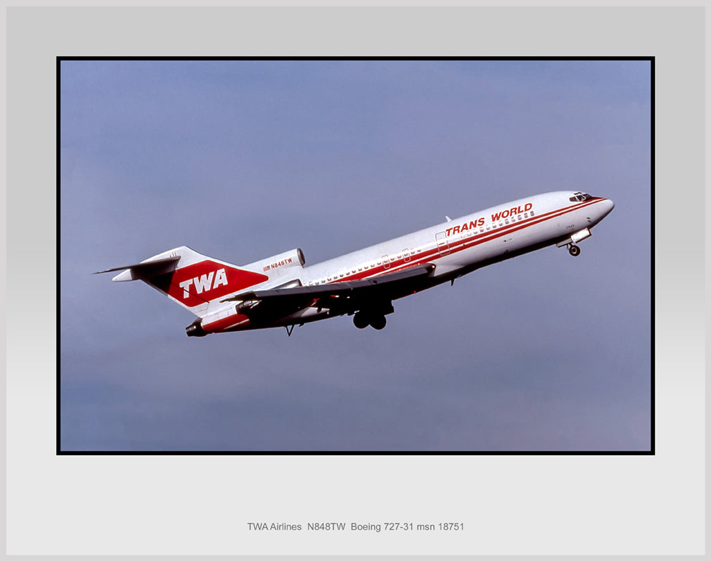 TWA AIRLINES, N848TW, Boeing 727-31, 11" X 14" Color Photograph (I210RAFH11X14)