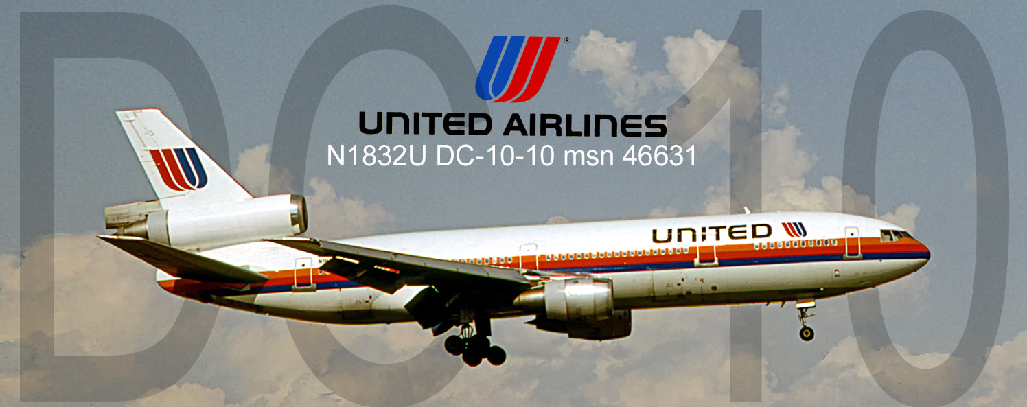 United Airlines, Douglas DC-10-10, N1832U, Handmade 2" x 5" Fridge Magnet (PMT1636)