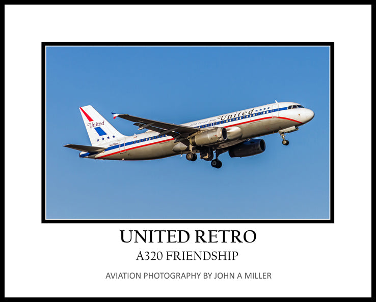 United Airlines, Retro Color Scheme, Airbus A320, 16" x 20" Color Photograph (APPL10007)