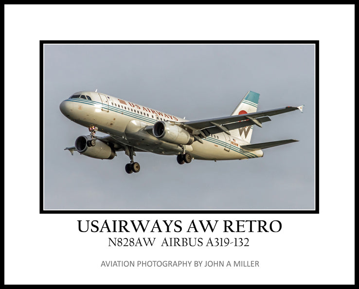USAirways, Airbus A319 in America West Retro Colors, 16" x 20" Color Photograph (APPL10009)