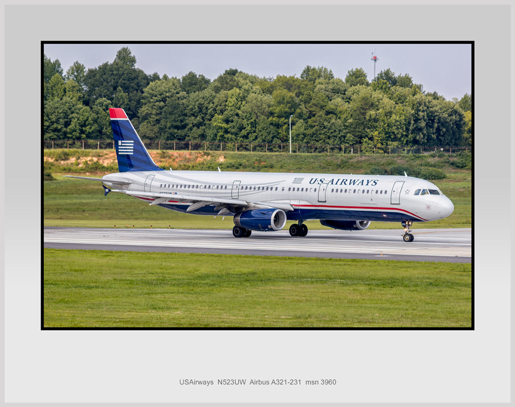 USAirways, N523UW, Airbus A321-231, 11" x 14" Color Photograph (TA029RGJM11X14)